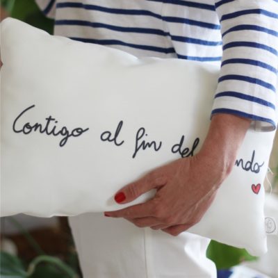 cojin contigo al fin del mundo. Diseño de La Tortuguita Blanca.