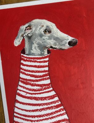 GALGO CON RAYAS SOBRE FONDO ROJO 6