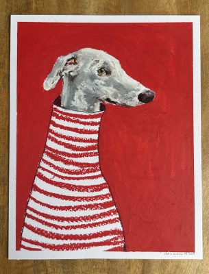 GALGO CON RAYAS SOBRE FONDO ROJO 1a