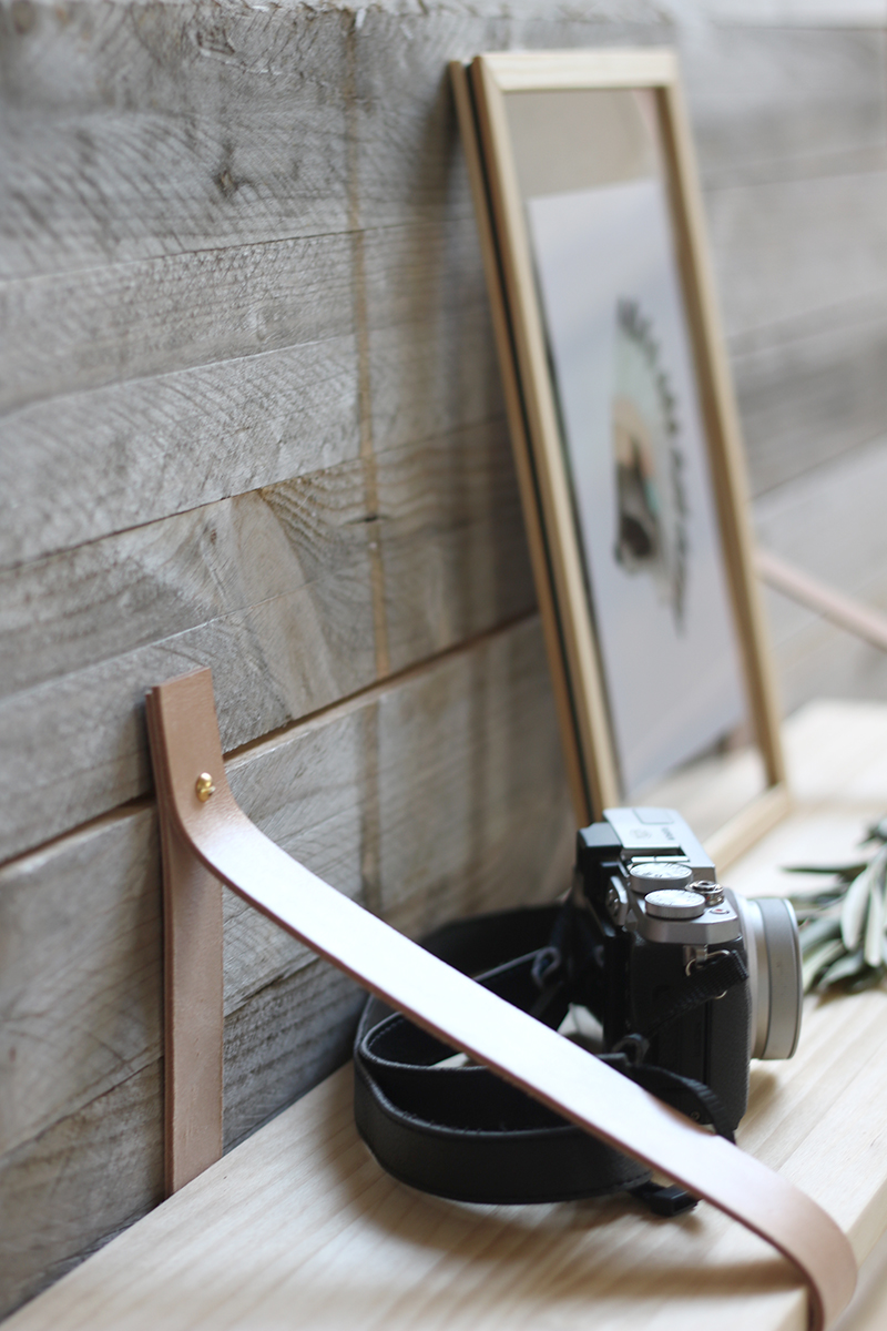 A mi me enamoraron la estantería y el marco. La estantería por su sencillez: una tabla de madera natural y unas tiras de cuero. Yo la he colocado en el estudio sobre un panel de madera y me gusta mucho el resultado.