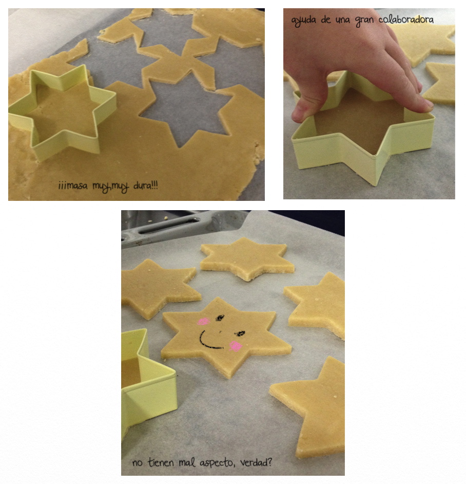 Extendí la masa, no sin gran esfuerzo, cogí el cortador con forma de estrella y con la ayuda de Luisa, fuimos cortando las galletas.