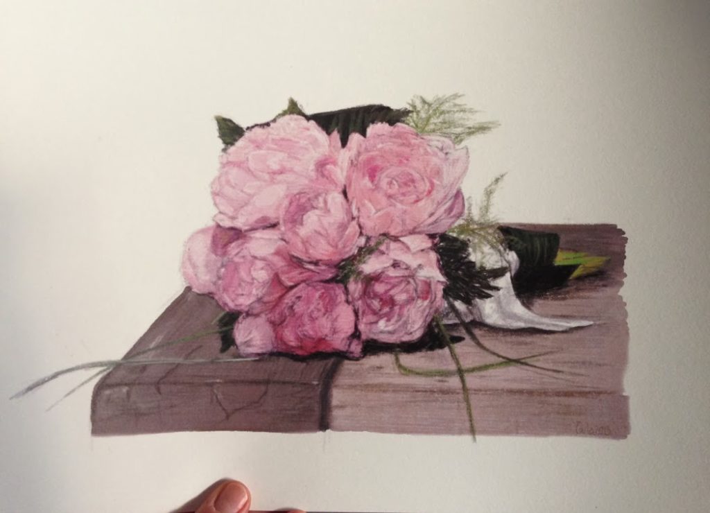 El que ilustra el post de hoy es el de Yolanda: un ramo de peonías rosas precioso. No pudo regalar el ramo de verdad a su hermana, a la que adora, y se le ocurrió regalarle una lámina. Cuando me contó su idea me pareció genial y he de deciros que a su hermana le encantó.