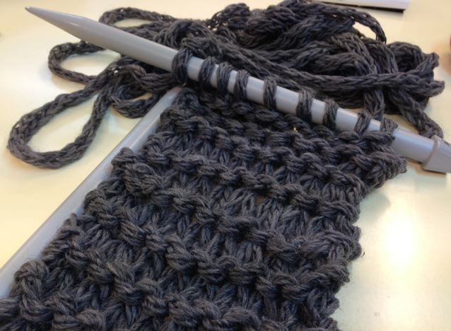 Me compré las agujas de punto más grandes que he visto en mi vida y una lana supergustosa de un color gris marengo precioso.