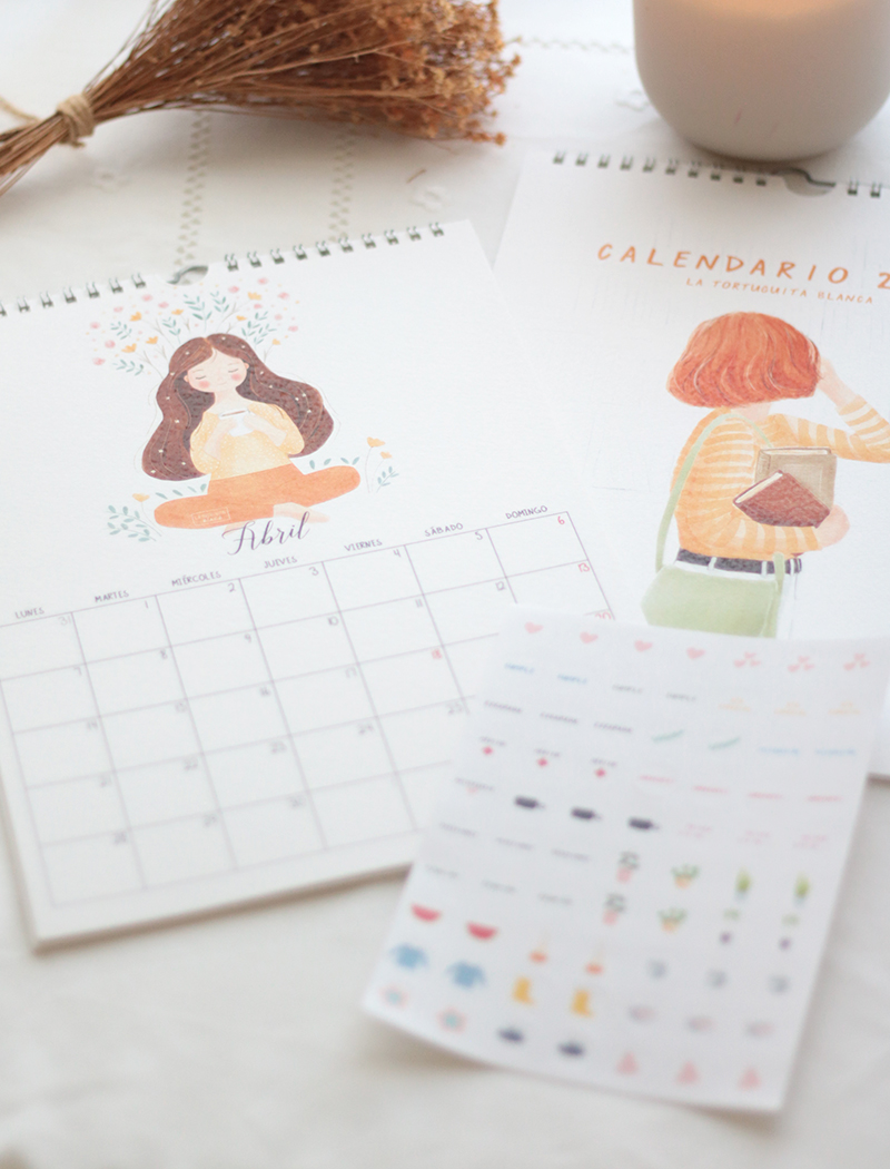 El calendario 2025 lo forman 12 ilustraciones variadas y de estilos diferentes que he dibujado especialmente para ilustrar cada mes.