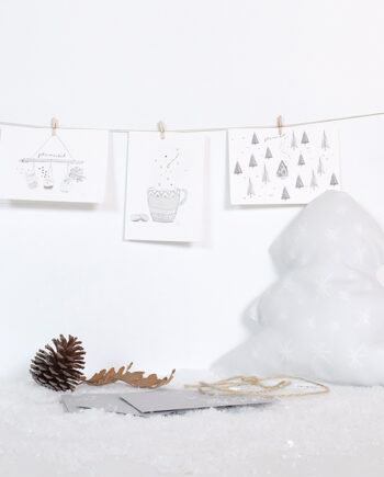 La impresión la he realizado en una pequeña imprenta local utilizando un papel italiano de gramaje superior. La felicitación navideña incluye un sobre kraft.