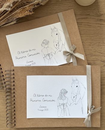 Lámina de huellas con la ilustración de la colección JIMENA. Puedes elegir cualquiera de las cuatro opciones: cuerpo entero pelo recogido o pelo suelto y medio cuerpo pelo recogido o pelo suelto.