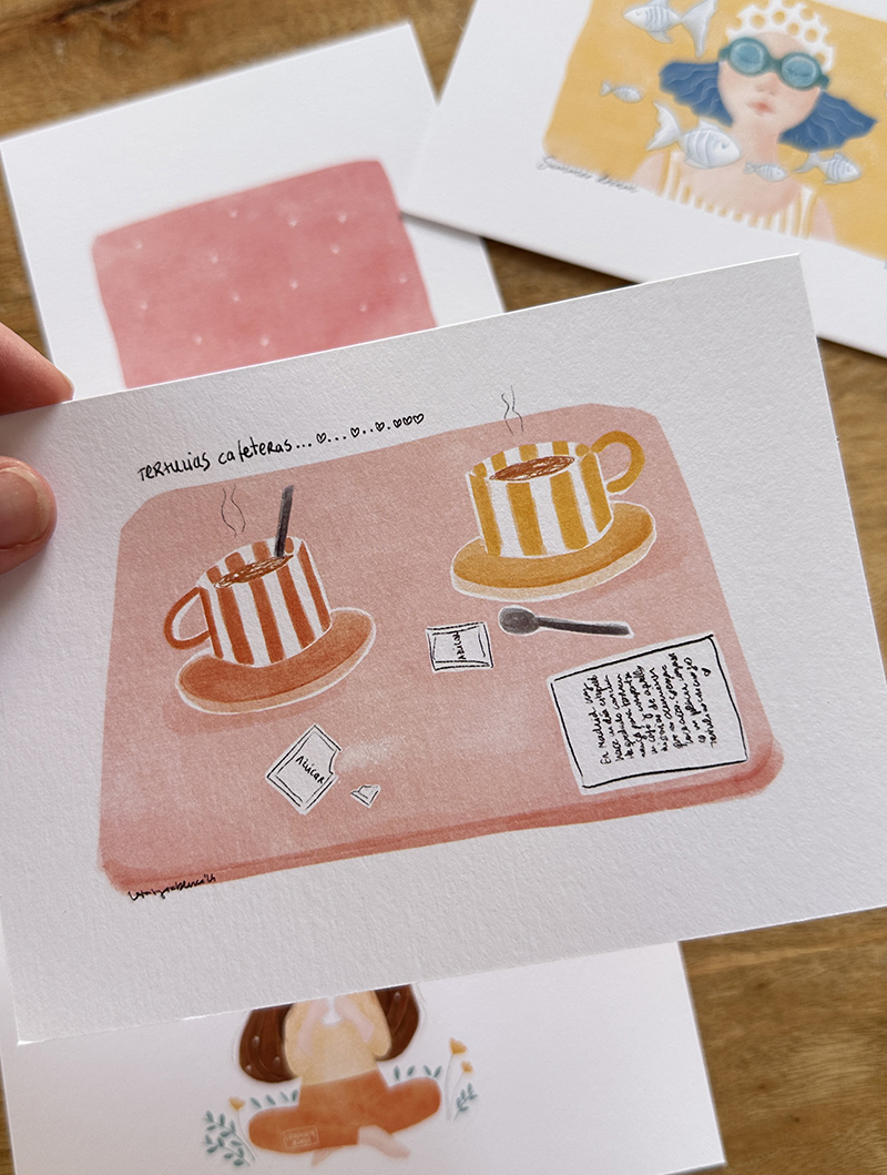 La lámina que te vas a llevar a casa es una reproducción de la ilustración original, impresa en papel COTTON italiano con textura de papel de acuarela, acabado mate, libre de ácidos y un gramaje de 270gramos. El proceso de impresión se realiza de forma artesanal en mi estudio, cuidando al máximo todos los detalles para que el resultado final sea óptimo.