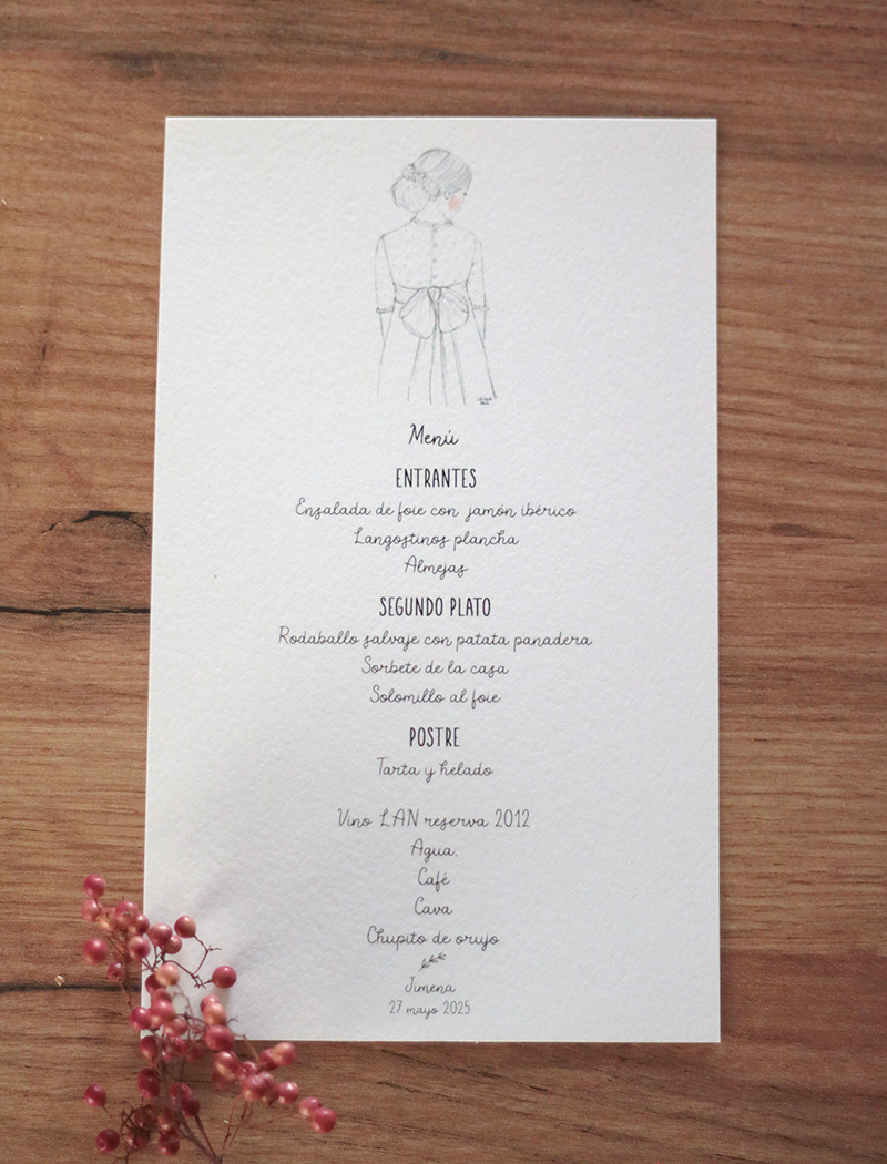 Los menús de Primera Comunión JIMENA son un complemento ideal para la celebración de un día tan especial. Con ellos logras dar un toque elegante a las mesas de invitados.
