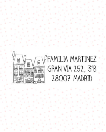 Con la dirección postal para poner el remite a tus cartas o hacer unas tarjetas personalizadas o marcar los libros de casa.