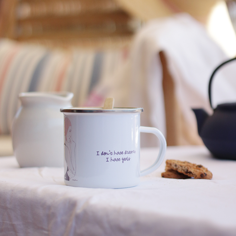 Las tazas con la ilustración NADADORA son ideales para este verano. Una sencilla ilustración muy veraniega, especial y sugerente para nosotras. Una nadadora pensativa con un reto, una idea, un sueño por cumplir. Una frase muy motivadora acompaña a la ilustración: “I have no dreams, i have goals”. Si prefieres otra frase o un nombre y fecha o simplemente quitar la frase se puede personalizar a tu gusto.