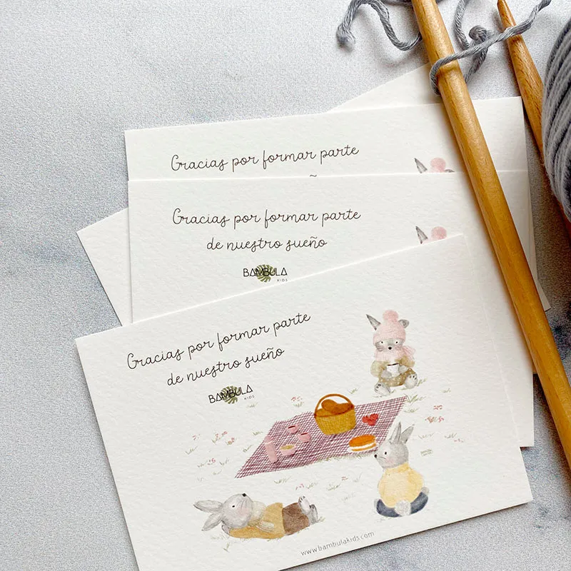 Diseños aplicados en tarjetas de agradecimiento y uso en redes sociales.