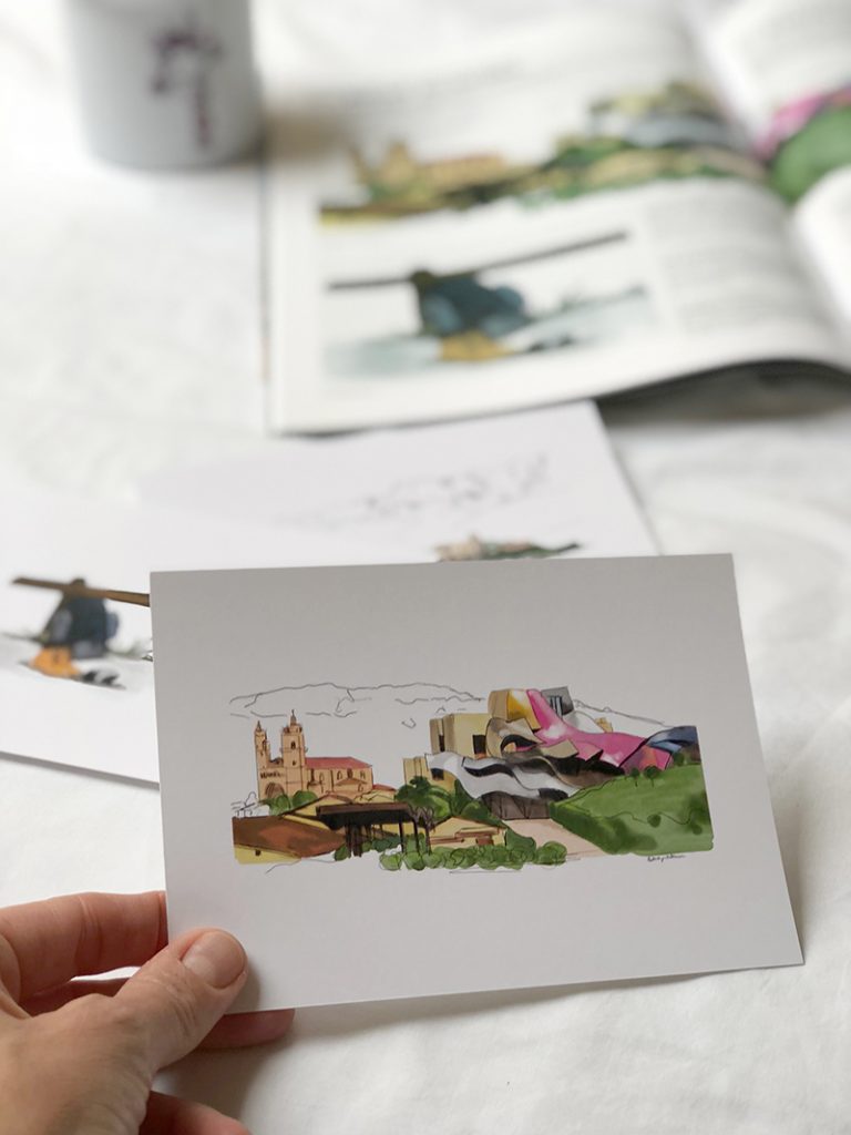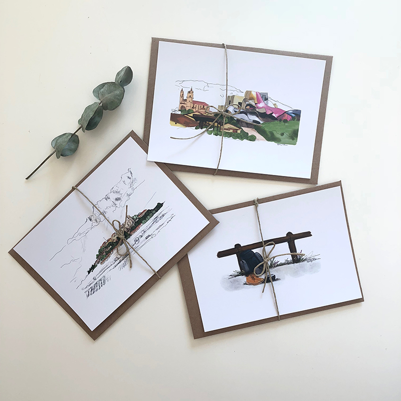 Turismo rural, enológico y senderismo quedan plasmados en tres ilustraciones que reproduje posteriormente en un pack de postales.