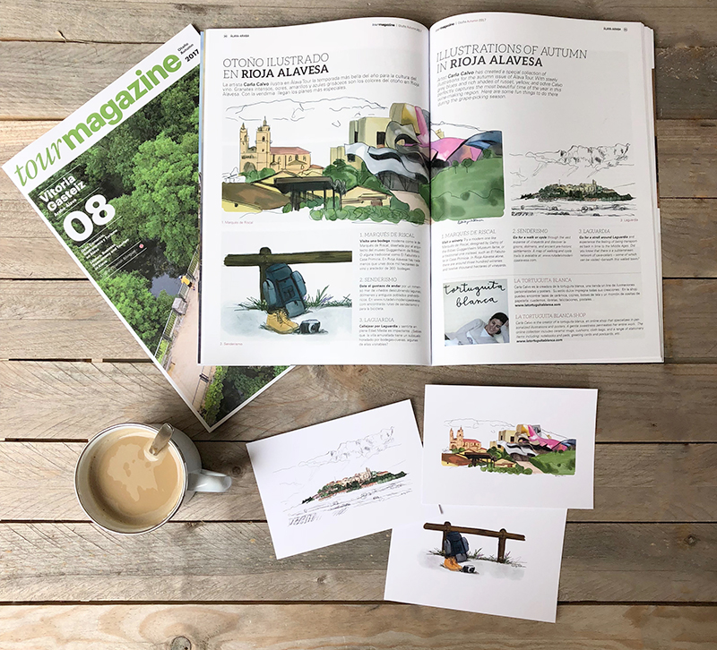 Realización de ilustraciones del artículo «Otoño ilustrado en Rioja Alavesa» para la revista Tour Magazine, edición Alava, nr. 08.