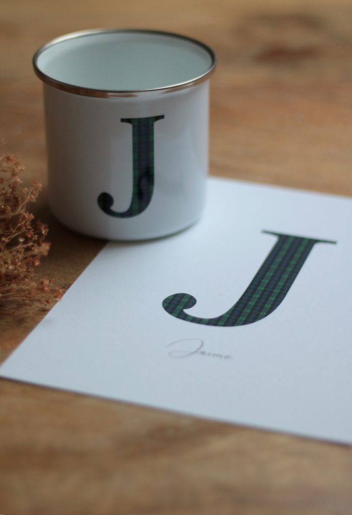 El pack BRITISH lo forman una taza y una lámina con la inicial escocesa. La inicial puede ser en escocés rojo o escocés azul/verde. Y para hacerlas todavía más únicas puedes personalizarlas con los nombre y/o fecha debajo o a un lado de la inicial. Tienes dos tipos de taza para elegir, cerámica o metal y varios tamaños de láminas A5, A4 y 30x40 cms. Al hacer el pedido: - Elige el tipo de taza; - Elige el tamaño de la lámina; - Indica la inicial en la casilla correspondiente; - Elige el color del diseño escocés; - y por último indica el nombre/fecha en caso de querer personalizarlas. En observaciones puedes aclarar lo que necesites. Las tazas con inicial las preparamos bajo pedido. Necesitamos un plazo de 7 días desde que realices el pedido hasta que lo recibas en casa. Estas son las características de los dos modelos: Taza de cerámica de alta calidad con una capacidad de 330 ml. Apta para microondas y friegaplatos (evitar lavados intensivos y temperaturas superiores a 50 grados) Taza de metal esmaltada en blanco de 300ml. Apta para friegaplatos, evitar lavados intensivos y temperaturas superiores a 50 grados. No utilizar en microondas. Te recomiendo que las laves a mano para que te duren en óptimas condiciones el máximo tiempo posible. Se presentan en caja de cartón. Diseño original de La Tortuguita Blanca. Las láminas están impresas en papel italiano de calidad profesional, libre de ácidos y de un gramaje de 270 grs. Tienes opción de solicitar la lámina enmarcada para los tamaños A5 y A4.