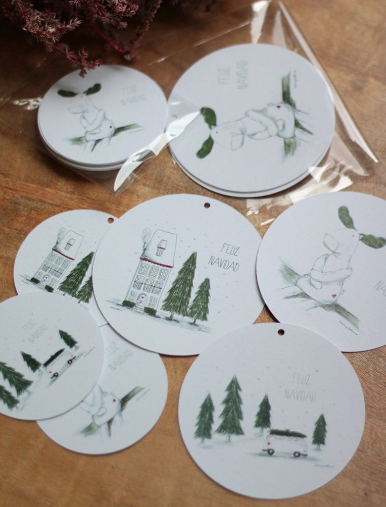 Packs de ETIQUETAS REDONDAS para tus regalos Navideños. Con el diseño de las casitas nevadas. Son ideales para dar un toque especial a tus regalos de esta Navidad. Dos tamaños de etiquetas y dos tipos de packs: Pack de 6 etiquetas grandes Pack de 10 etiquetas pequeñas Las grandes miden 8,50cms y las pequeñas 6,40cms. La cara trasera está en blanco para que puedas apuntar el nombre o un bonito mensaje. Impresas en papel texturado blanco de un gramaje 270gr/m2. Se presentan en bolsa de celofán
