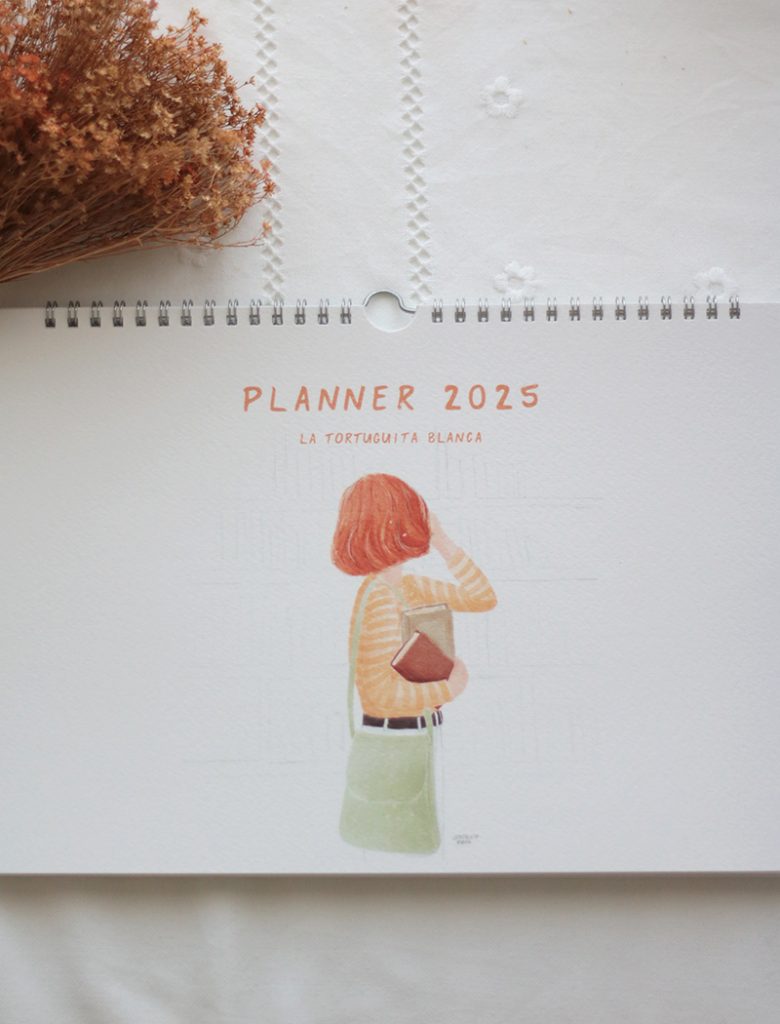 El planner mensual 2025 es perfecto para apuntar tus objetivos, planes y otros asuntos y visualizarlo cada mes. Esta pensado para que lo utilices en tu escritorio totalmente abierto y al tener su espiral te permite doblarlo y que te ocupe la mitad o colgarlo en la pared. Cada mes ocupa una hoja, impresa por un único lado y está ilustrado con ilustraciones variadas y de estilos diferentes. En cada mes vas a tener, además de la cuadrícula con los días, espacio para apuntar: - Objetivos mensuales; - Cumples y eventos; - Viajes y planes; - Notas. También puedes utilizar la parte trasera del mes anterior para pegar fotografías, recortes, dibujar o tomar notas de temas importantes. Incluye una hoja de pegatinas removibles que puedes pegar y despegar y recolocar de nuevo. Está disponible en tres tamaños A3, A4 y A5. La portada y contraportada están preparadas con papel profesional de 260 grs de gramaje y las interiores con papel profesional de 150grs. El planificador consta de 15 hojas: portada, 1 hoja con el calendario anual, 12 hojas impresas a una cara con todos los meses, contraportada y una hoja A5 con pegatinas redondas removibles con ilustraciones y textos variados. Es ideal para tenerlo a mano cada día en tu oficina o estudio.