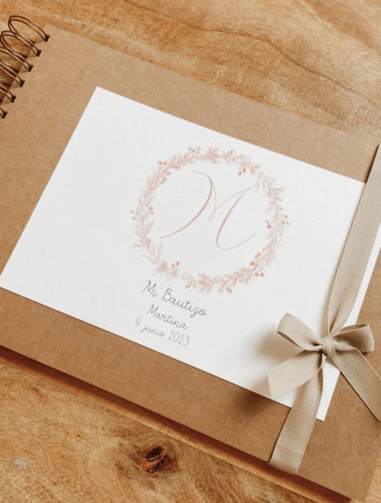 Un libro de BAUTIZO para apuntar todos lo detalles de un día tan importante, reunir las firmas de los invitados y poner algunas fotos más especiales. Con espacios en blanco para rellenar a mano. De tapas duras de acabado kraft, espiral y 15 hojas de tacto de algodón está elaborado a mano en una pequeña imprenta local. La portada exterior se personaliza con una lámina A5 con el diseño de la inicial y la corona vegetal. Dos colores disponibles, verde oliva y rosa empolvado. Si prefieres otro color, puedes indicarlo en el pedido. Contenido: 1 hoja portada; 4 hojas para rellenar con detalles del día; 2 hojas para firmas y dedicatorias; 2 hojas para recuerdos y recordatorios 3 hojas para fotos 3 hojas vacías para lo que se quiera.