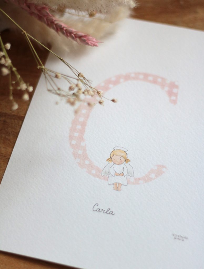 Las nuevas LÁMINAS INCIAL VICHY con un pequeño ANGELITO en versión NIÑO y NIÑA, son ideales para decorar la habitación de los más pequeños y para tener un bonito detalle el día del nacimiento o bautizo del bebé. Cuatro colores disponibles para la INICIAL y el VICHY de acuarela: MOSTAZA, VERDE, ROSA y MARRÓN. Opción de INICIAL LISA o VICHY y de añadir el recuadro o "papartú pintado" en VICHY. Puedes elegir estas opciones en el formulario. Tienes todo el ABECEDARIO y los diseños VICHY en los 4 colores en las fotos de la galería. Además de la inicial puedes personalizarla añadiendo debajo un nombre y una fecha o una frase especial. Es una reproducción de la ilustración original, impresa en papel TINTORETTO (con textura de papel de acuarela), acabado mate, libre de ácidos y un gramaje de 300gramos. El proceso de impresión se realiza de forma artesanal en una imprenta local, cuidando al máximo todos los detalles para que el resultado final sea óptimo. Disponible en varios tamaños. Los tamaños L y XL se imprimen en papel photo satin 240 grs. No incluye marco pero tienes puedes pedir tu lámina enmarcada marcando la opción en el formulario (para tamaño 21x30cms). Se presenta en bolsa de celofán y los tamaños A3, L y XL en tubo de cartón.