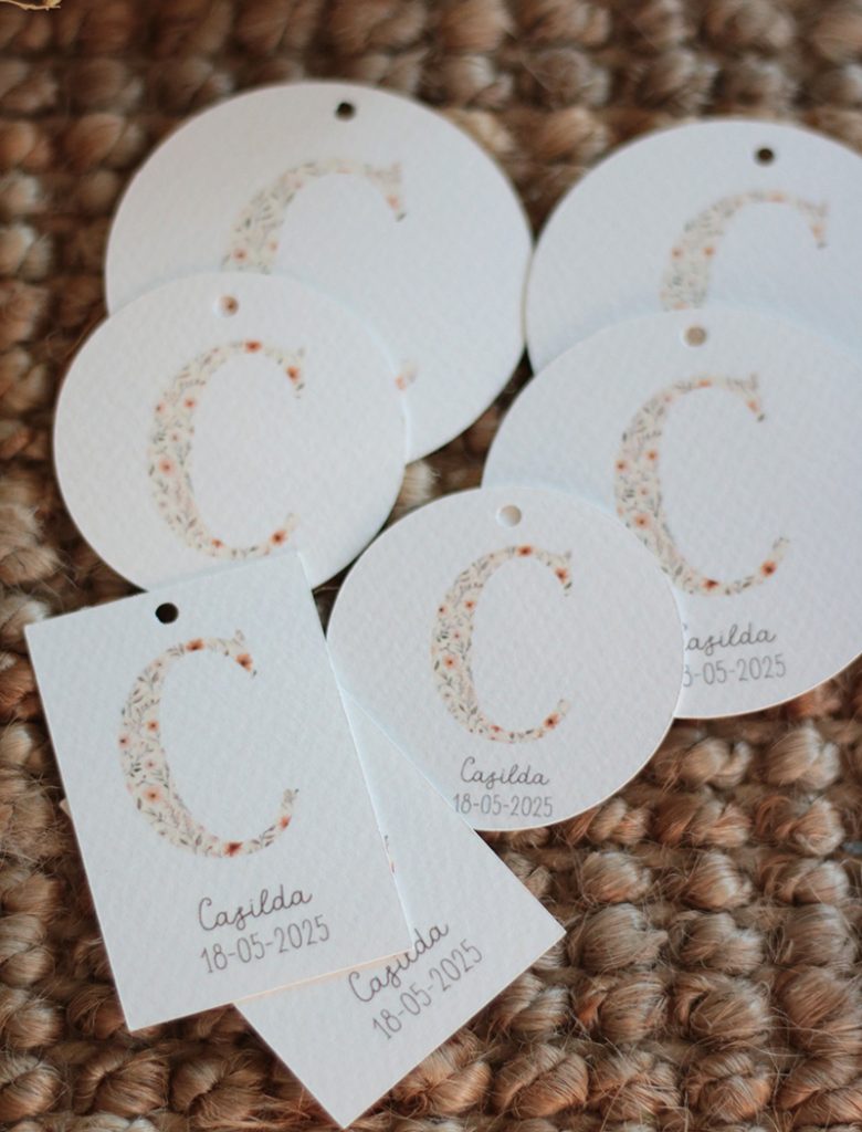 Etiquetas y Pegatinas con el diseño de INICIAL NATURA. Son ideales para personalizar los detalles de los invitados (bolsitas de chuches, velas) o para cerrar los sobres. Puedes elegirlas sólo con la inicial o añadir el nombre y la fecha. Hay varios formatos disponibles*: REDONDAS de varios diámetros (4cms, 5cms y 6cms) RECTANGULARES de 4x6cms Vienen en packs de 24, 36 y 48 uds*. Puedes elegirlas sólo con la inicial o añadir el nombre y la fecha. Hay varios formatos disponibles*: REDONDAS de varios diámetros (4cms, 5cms y 6cms) RECTANGULARES de 4x6cms Vienen en packs de 24, 36 y 48 uds*. Las etiquetas llevan su agujerito, y están impresas en papel fineart de 270 grs. No se incluye la cuerda. Se presentan en bolsita de celofán. Las pegatinas están impresas en papel blanco roto, con un poco de textura. Y se presentan sobre papel satinado para que las puedas despegar con facilidad. * Si quieres otro formato/tamaño u otras cantidades solicita presupuesto personalizado o escríbenos a info@latortuguitablanca.com.