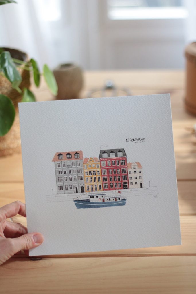 La lámina COPENHAGUE abre la colección de CIUDADES. Esta colección es mi interpretación un tanto "naif" de algunas de las ciudades del mundo: sus fachadas, calles o lugares más icónicos. Son ilustraciones llenas de color ideales para dar un toque alegre a cualquier rincón. De momento son dos las láminas de esta colección que te animo a comenzar e ir ampliando poco a poco. Si has estado y quieres recordar el viaje, es buena idea personalizarla con una frase especial, con una fecha o con un nombre. La lámina que te vas a llevar a casa es una reproducción de la ilustración original, impresa en papel TINTORETTO (con textura de papel de acuarela), acabado mate, libre de ácidos y un gramaje de 300gramos. El proceso de impresión se realiza de forma artesanal en una imprenta local, cuidando al máximo todos los detalles para que el resultado final sea óptimo. Disponible en varios tamaños. Los tamaños L y XL se imprimen en papel photo satin 240 grs. No incluye marco pero puedes solicitarla enmarcada para los tamaños A5, A4 y 20x20. Se presenta en bolsa de celofán y los tamaños A3, L y XL en tubo de cartón.
