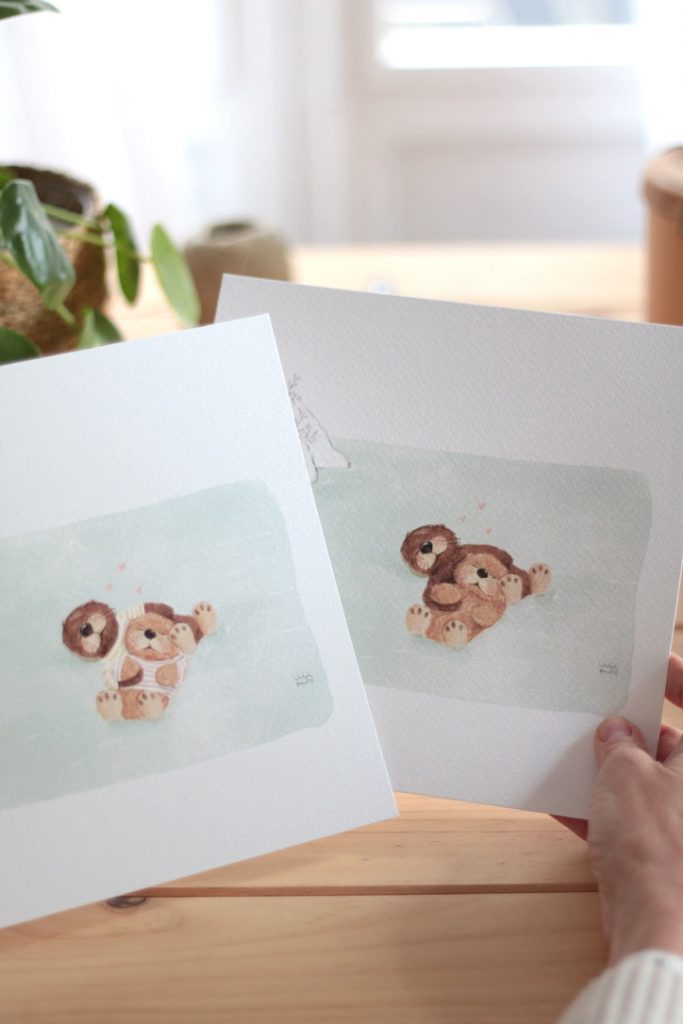La lámina de la pareja de NUTRIAS es amor en estado puro. Son tan adorables que no he podido evitar dedicarles una lámina especial. La dibujé para el calendario 2023 y se une a la colección de los animalitos de La Tortuguita Blanca. Está disponible en 2 versiones CON CAMISETA de rayas y SIN CAMISETA. Es una lámina ideal para decorar la habitación de los más pequeños o para tener un bonito detalle con tu pareja. Puedes personalizarla con una frase especial, con una fecha o con un nombre. La lámina que te vas a llevar a casa es una reproducción de la ilustración original, impresa en papel TINTORETTO (con textura de papel de acuarela), acabado mate, libre de ácidos y un gramaje de 300gramos. El proceso de impresión se realiza de forma artesanal en una imprenta local, cuidando al máximo todos los detalles para que el resultado final sea óptimo. Disponible en varios tamaños. Los tamaños L y XL se imprimen en papel photo satin 240 grs. No incluye marco pero puedes solicitarla enmarcada para los tamaños A5, A4 y 20x20. Se presenta en bolsa de celofán y los tamaños A3, L y XL en tubo de cartón.
