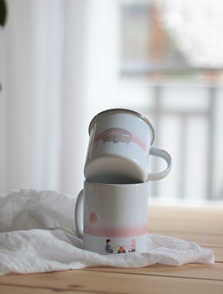 Las tazas de cerámica y metal con la ilustración "ACAMPADA" son alegres y llenas de color. Esta ilustración la dibuje para ilustrar uno de los meses de verano del calendario 2022 y me ha parecido muy bonita para ilustrar una pequeña colección de tazas de cerámica y metal. Las tazas son ideales para tener un bonito detalle o para disfrutarlas en casa con un café o tu bebida favorita. Puedes elegir la versión que más te guste, cerámica o metal. Quedan preciosas en cualquier rincón: en la mesa de desayuno, en la oficina o el estudio... También son ideales para utilizarlas como portalápices e incluso como macetas. Puedes PERSONALIZARLAS con un NOMBRE, FECHA o FRASE especial. En breve saldrán los packs para regalar junto a una lámina con la misma ilustración. Y estas son las características de los dos modelos: Taza de cerámica de alta calidad con una capacidad de 330 ml. Apta para microondas y friegaplatos (evitar lavados intensivos y temperaturas superiores a 50 grados) Taza de metal esmaltada en blanco de 300ml. Apta para friegaplatos, evitar lavados intensivos y temperaturas superiores a 50 grados No utilizar en microondas. Se presentan en caja de cartón blanca. Diseño original de La Tortuguita Blanca