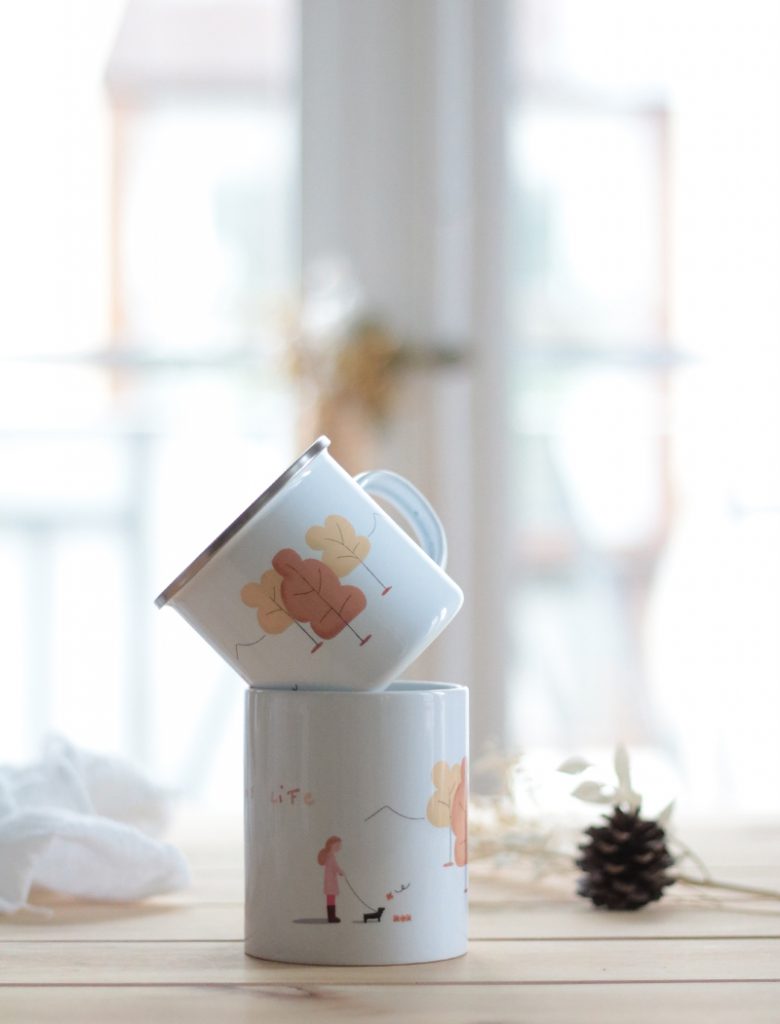 Las tazas de cerámica y metal con la ilustración "ENJOY LIFE. OTOÑO" son alegres y llenas de color. Esta ilustración la dibuje para ilustrar uno de los meses de otoño del calendario 2022 y me ha parecido muy bonita para ilustrar una pequeña colección de tazas de cerámica y metal. Las tazas son ideales para tener un bonito detalle o para disfrutarlas en casa con un café o tu bebida favorita. Puedes elegir la versión que más te guste, cerámica o metal. Quedan preciosas en cualquier rincón: en la mesa de desayuno, en la oficina o el estudio... También son ideales para utilizarlas como portalápices e incluso como macetas. Puedes PERSONALIZARLAS con un NOMBRE, FECHA o FRASE especial. Te podemos preparar un pack para regalar junto a una lámina con la misma ilustración. Añade la lámina al carrito y en observaciones indica que lo quieres en pack regalo. Y estas son las características de los dos modelos: Taza de cerámica de alta calidad con una capacidad de 330 ml. Apta para microondas y friegaplatos (evitar lavados intensivos y temperaturas superiores a 50 grados) Taza de metal esmaltada en blanco de 300ml. Apta para friegaplatos, evitar lavados intensivos y temperaturas superiores a 50 grados No utilizar en microondas. Se presentan en caja de cartón blanca. Diseño original de La Tortuguita Blanca