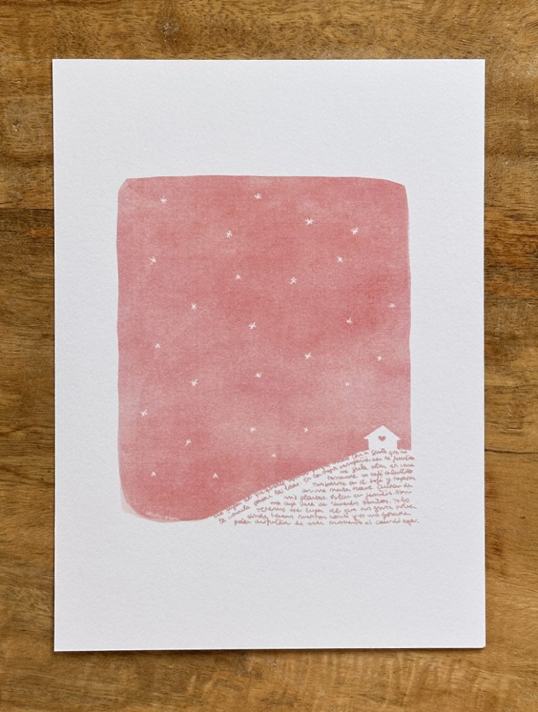 La lámina MI REFUGIO es una ilustración que representa ese espacio íntimo que nos da seguridad, calma, en el que nos sentimos a gusto, protegidas, queridas. Unas veces ese espacio es tu hogar, tu casa familiar; otras es una persona, un recuerdo... Es una lámina ideal para decorar cualquier espacio de nuestro hogar. La lámina que te vas a llevar a casa es una reproducción de la ilustración original, impresa en papel COTTON italiano con textura de papel de acuarela, acabado mate, libre de ácidos y un gramaje de 270gramos. El proceso de impresión se realiza de forma artesanal en mi estudio, cuidando al máximo todos los detalles para que el resultado final sea óptimo. Disponible en varios tamaños. Los tamaños L y XL se imprimen en cartulina mate de 210 grs. No incluye marco pero puedes solicitarla enmarcada para los tamaños A5, A4 y 20x20. Se presenta en bolsa de celofán y los tamaños A3, L y XL en tubo de cartón.