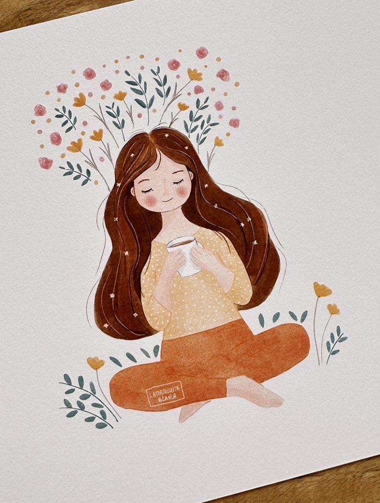 La lámina MI PEQUEÑO RITUAL es una ilustración que evoca un momento de calma, autocuidado y bienestar. Un momento de relax con pensamientos bonitos y disfrutando del momento. Es una lámina decorativa de colores vivos y alegres ideal para dormitorios, rincones de lectura y zonas de descanso. Puedes personalizarla con una frase especial, con una fecha o con un nombre. La lámina que te vas a llevar a casa es una reproducción de la ilustración original, impresa en papel COTTON italiano con textura de papel de acuarela, acabado mate, libre de ácidos y un gramaje de 270gramos. El proceso de impresión se realiza de forma artesanal en mi estudio, cuidando al máximo todos los detalles para que el resultado final sea óptimo. Disponible en varios tamaños. Los tamaños L y XL se imprimen en cartulina mate de 210 grs. No incluye marco pero puedes solicitarla enmarcada para los tamaños A5, A4 y 20x20. Se presenta en bolsa de celofán y los tamaños A3, L y XL en tubo de cartón.