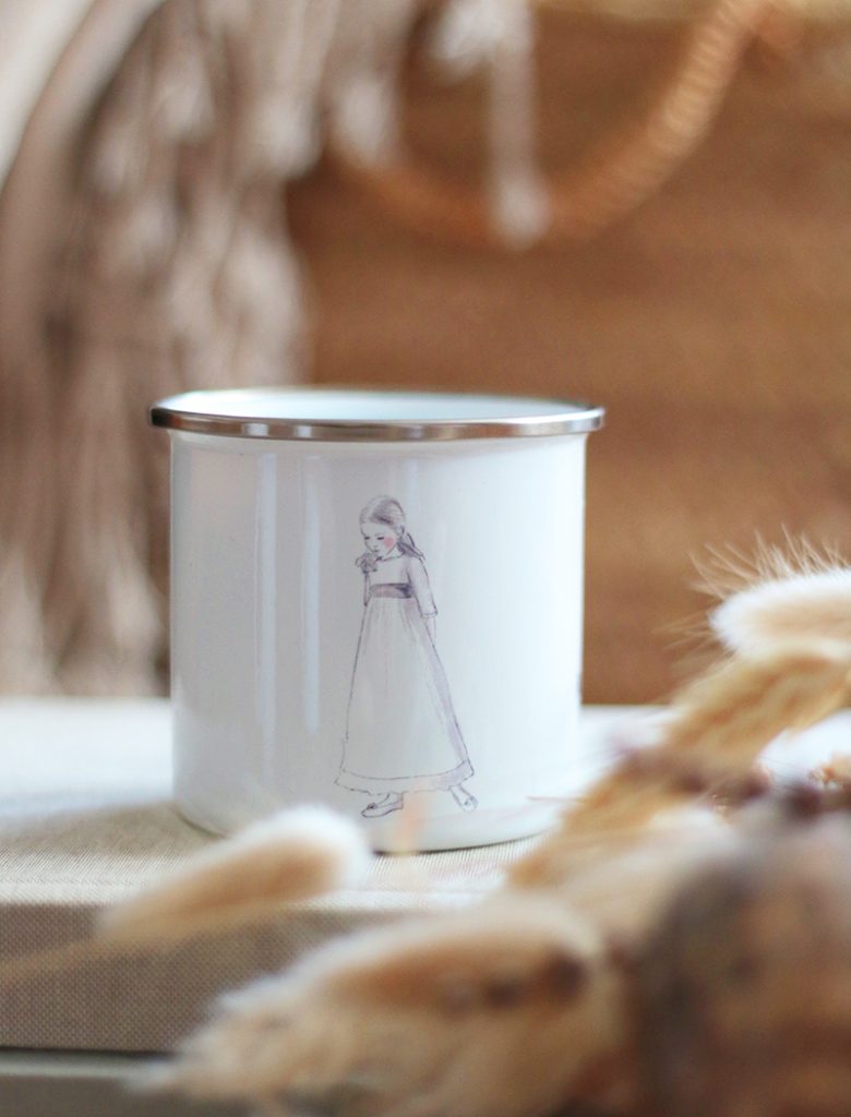Taza de metal con el diseño de colección CARLOTA. Una taza ideal para regalar en un día muy especial o para tener un detalle con los invitados. Las puedes personalizar con un nombre, una frase o una fecha. Si quieres más de 5 tazas pídenos presupuesto en info@latortuguitablanca.com. Y estas son las características: Taza de metal esmaltada en blanco de 300ml. Apta para friegaplatos, evitar lavados intensivos y temperaturas superiores a 50 grados No utilizar en microondas. Se presentan en caja de cartón. Diseño original de La Tortuguita Blanca