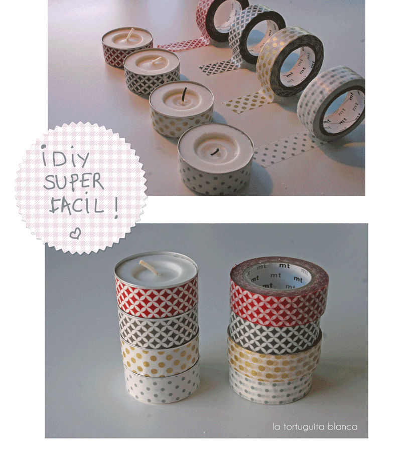 Quedan unas velitas decoradas muy monas. Cuando se gasta la vela la sacas y pones una nueva, así puedes aprovechar la base forrada de washi.